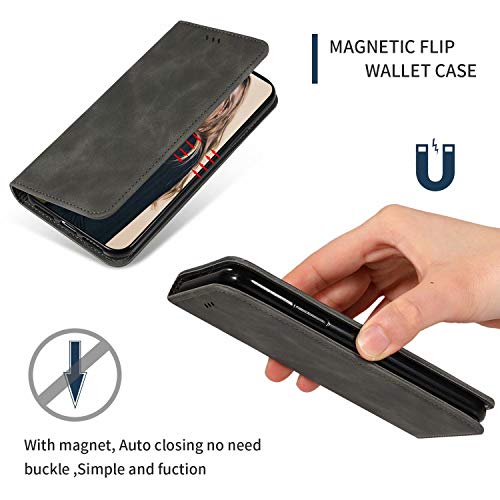 BESTCASESKIN Cover iPhone 12 PRO Max 6.7" Premium Portafoglio Wallet Flip Custodia Protezione Cellulari Case PU Libro Morbido Shell Supporto + Pellicola Protettiva in Vetro Temperato, Grigio Scuro