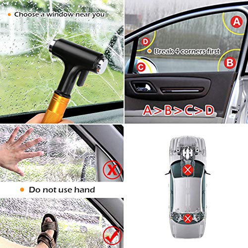 【Grande martello di sicurezza di potenza】 Punta di martello in acciaio al tungsteno ad alta durezza dura e tagliente, può immediatamente rompere il finestrino, con una taglierina nascosta affilata può tagliare rapidamente la cintura di sicurezza.