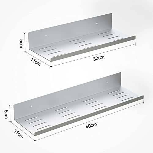 Grande capacità: set da 2 pezzi. Le dimensioni della mensola da parete sono di 30 x 11 x 5 cm, 40 x 11 x 5 cm, che offrono spazio sufficiente per gli articoli da cucina da bagno.