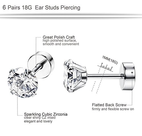 --Taglia--Un ordine include 6 Paia diverse orecchini: 3mm, 4mm, 5mm, 6mm, 7mm, 8mm, spessore di borchie:18G=1mm, adatta per tutte le donne e gli uomini.