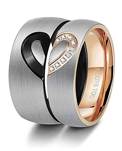 BESTEEL Anello in Acciaio Inossidabile per Uomo Donna Amore Cuore Anelli Anello di Fidanzamento Nuziale Coppie Lui e lei