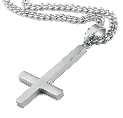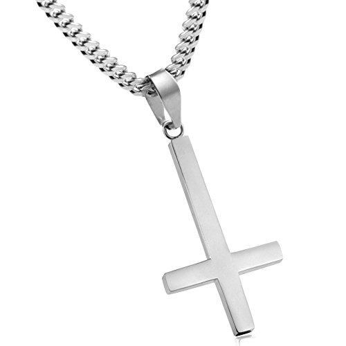 BESTEEL Collana Croce rovesciata Gioielli in Acciaio Inox per Le Donne Gli Uomini 24 Pollici Catena 3 Colori Disponibili