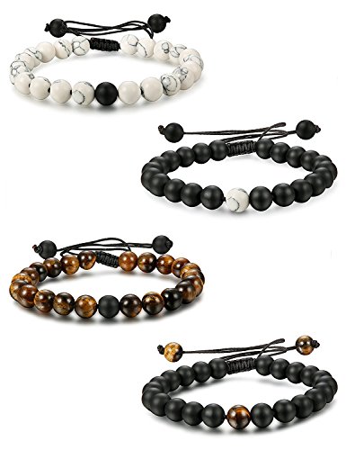 BESTEEL 2-4 pezzi Bracciale in pietra perline per uomini donne bracciali rapporto intrecciato pietra naturale regolabile 8 mm perline, 17 cm, Pietra, Occhio di tigre
