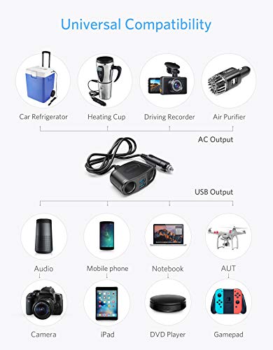 【La Potenza Totale di 150 w】La potenza di 150 watt soddisfa le esigenze di ricarica della maggior parte dei dispositivi dei veicoli. Cavo di circa 68 cm, può essere esteso fino al sedile posteriore, abbastanza per collegare i tablet o un altro dispositivo installato nella parte posteriore. 2 anni di garanzia sul prodotto e un buon servizio cliente
