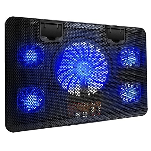 BestFire Laptop Cooling Pad raffreddamento Chill Mat con 5 ventole silenziose luci blu del LED e 2 porte USB 2.0 portatile Notebook Cooler raffreddamento Fits 14 "-17"