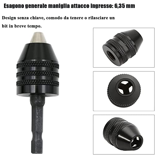Mandrino trapano a sgancio rapido per avvitatore a batteria per tutti i dispositivi con punta 6,35 mm gamma di serraggio 0,3 a 8 mm