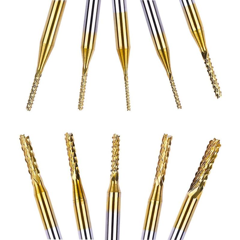 Note: Queste frese sono adatte ai metalli teneri come l'alluminio, ma non ai metalli duri. Si prega di evitare materiali come rame, ferro, sabbia e pietra. Caratteristiche: √ Arco tagliente, fresatura, bordo del foro e della piastra, superficie pulita, pulita, senza difetti. √ Le superfici ben levigate sono molto pulite e pulite, e non vi sono problemi o sbavature sul gambo. √ Ci sono 10 pezzi in totale in questo set che potete utilizzare abbastanza a lungo. Sono tutti confezionati e assortiti in una scatola di plastica per riporli facilmente. √ Molti articoli o materiali possono essere incisi, come schede di circuito stampato, plastiche, fibra di carbonio e legno duro. Specifiche: Materiale: carburo monoblocco in acciaio al tungsteno con placcatura in titanio. Rivestimento: titanio. Gamba: 3,175 mm. Lunghezza di taglio: 12 mm. Lunghezza totale: 37 mm. Diametro di taglio: 0,8-3,175 mm (0,8, 1,0, 1,2, 1,4, 1,6, 1,8, 2,0, 2,2, 2,4, 3,17 mm). Contenuto: 10 frese per incisione PCB CNC.