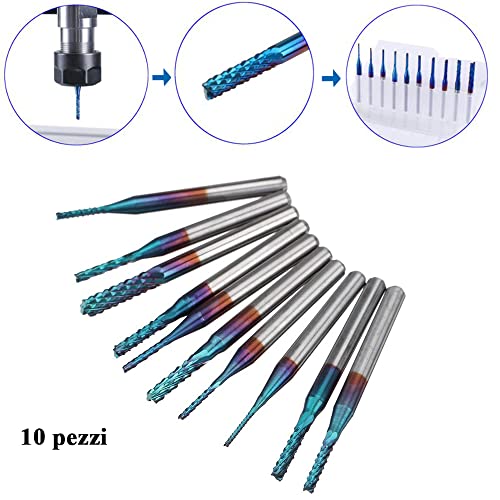 Bestgle 10 pezzi Fresa a punta di tungsteno,fresa di Titanio rivestito blu punte del router fresatrice taglierina da trapano cnc frese rotative strumento(0.3-3.175mm)