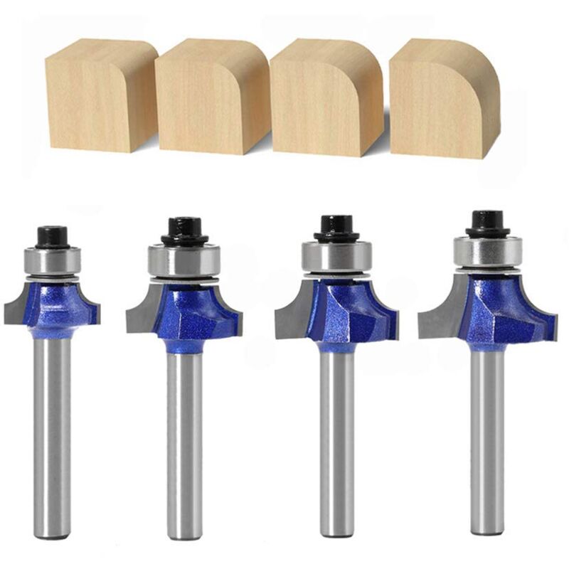 Prodotti in metallo con bordo tagliente, si prega di fare attenzione quando si apre la confezione o si utilizza, anche tenere lontano dalla portata dei bambini. Il prodotto con lama non è utilizzato per persone di età inferiore ai 18 anni. Rasoi permanentemente chiusi in una cartuccia o alloggiamento con meno di 2 mm di lama esposta. L'articolo è solo per taglio industriale o incisione, non è un oggetto pericoloso. 4 pezzi 1/4 Inch(6,3 mm) gambo punte per router rotonde CornerPunta per fresatrice, 3 pezzi frese per legno, mobili da fai da te (8 mm) Rivestimento in teflon resistente al calore per prevenire l'accumulo di segatura, resina e paglia, corpo in acciaio temprato solido con design anti-rimbalzo, lama in carburo di micro grana di qualità industriale Lama in carburo a micro grana di grado industriale. Gli angoli alti del gancio e della cesoia consentono alle frese di tagliare delicatamente nel materiale producendo un materiale pulito e senza scheggiature. Dimensioni radio:3/16