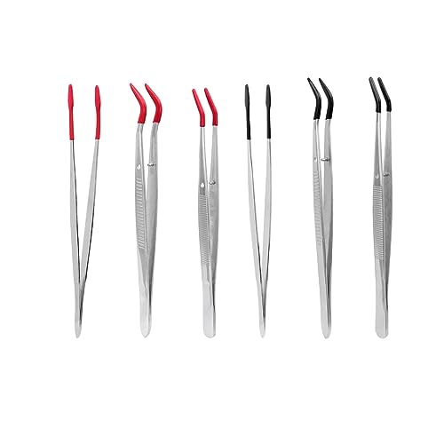 Bestgle Set di 6 pinzette di precisione con punta in gomma, set di pinzette curve non magnetiche, set di pinzette