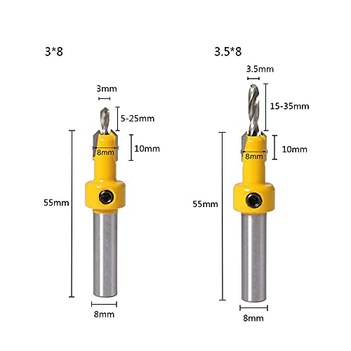 Bestgle Quick Change Svasatore per legno frese Countersink Drill HSS Bit 8mm Gambo Punta da Trapano 2.8mm-4 mm punta conica per trapano in legno