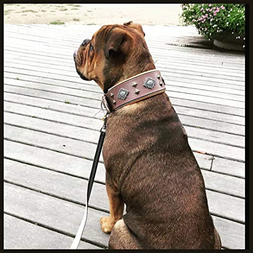 Bestia "Aztec Grigio in Vera Pelle Grande Collare. Unico Rivet Design. Morbido Imbottito, L- Fits a Neck of 19.7-23.6 inch, Grey & Tan