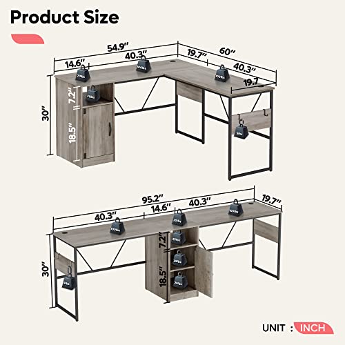 Bestier Scrivania a forma di L con armadietto portaoggetti ad angolo da 152,4 cm, scrivania per computer, moderna, per casa e ufficio, design reversibile, per 2 persone (grigio lavato)