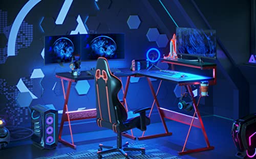 Bestier Scrivania da Gioco a Forma di L Scrivania per Computer con Luci a LED Supporto per Monitor Scrivania ad Angolo da 130 cm per Piccoli Spazi di Home Office