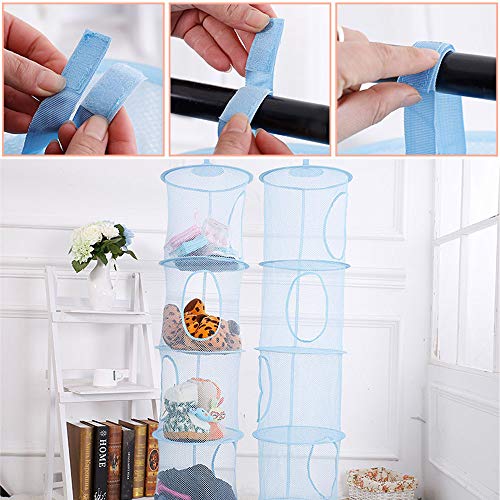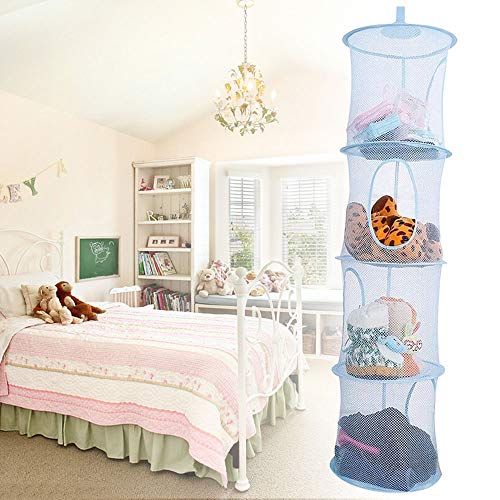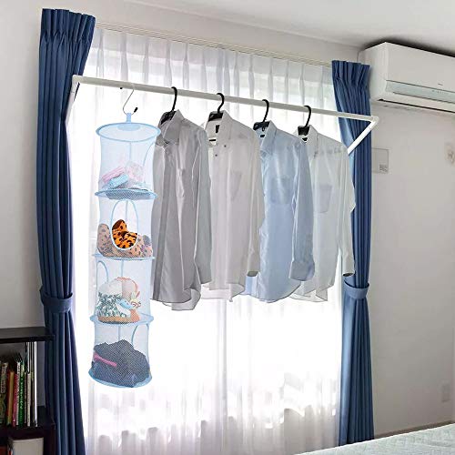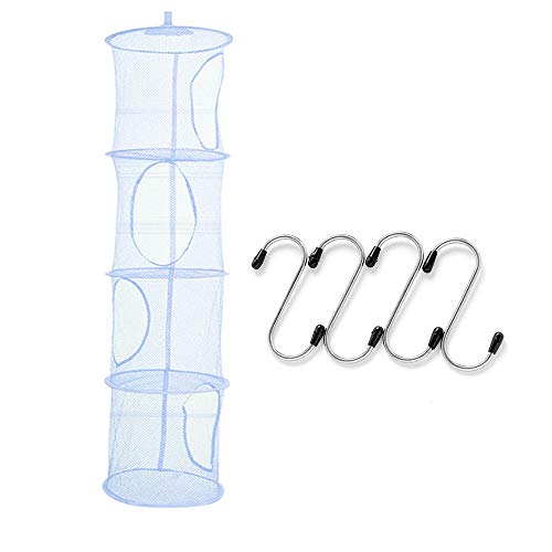 Bestine 4 Livelli Rete da Appendere, 110 * 30 cm Portaoggetti Pieghevole Salvaspazio in Rete Organizer Cestello per Asciugatrice per Vestiti Giocattoli Articoli Vari con 4 Ganci a S,Blu