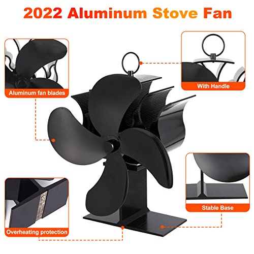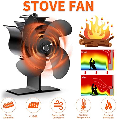 Bestine Ventilatore per Stufa, Ventilatore da Camino con 4 Lame, Ultra Silenziosa ed Efficiente Ventilatore per Caminetto Ecologico per Legna/Bruciatore di Tronchi/Stufa/Camino, con Termómetro