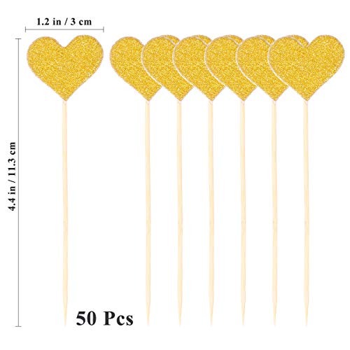 BESTOMZ 50PCS Cuore Cupcake Toppers Gold Glitter Cuore Grande Topper per Cupcake Golden Wedding/Bridal/Baby Shower