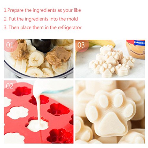 Funzioni:2 teglie per ogni set.Teglia con stampi zampe di cucciolo, con 14 stampini di zampe.Teglia di stampi a forma di ossi, composta da 15 stampini. Dimensioni:30 x 25 cm.