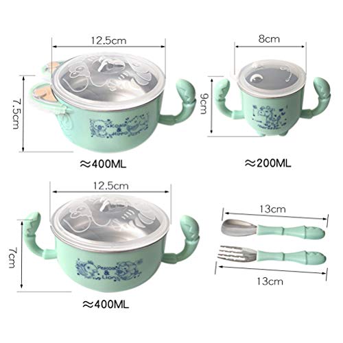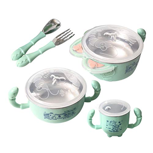Bestonzon - Ciotola con coperchio, cucchiaio, forchetta, isolante, in acciaio INOX, per bambini, confezione da 5