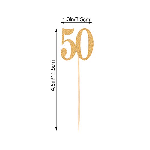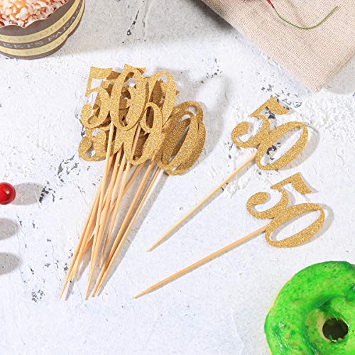 BESTONZON, Decorazioni Glitterate per Cupcake con Numero 50, per Feste di Compleanno, 24 Pezzi (Oro)