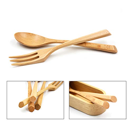 BESTONZON Set di 3 forchette per cucchiaio portatile in legno Set di forchette per alimenti in legno forchetta con manico in legno Set di posate per posate