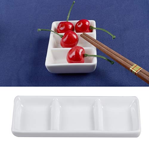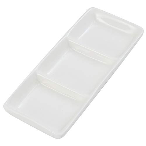 Bestonzon, vassoio rettangolare in ceramica bianca a 3 scomparti, per antipasto, per salsa