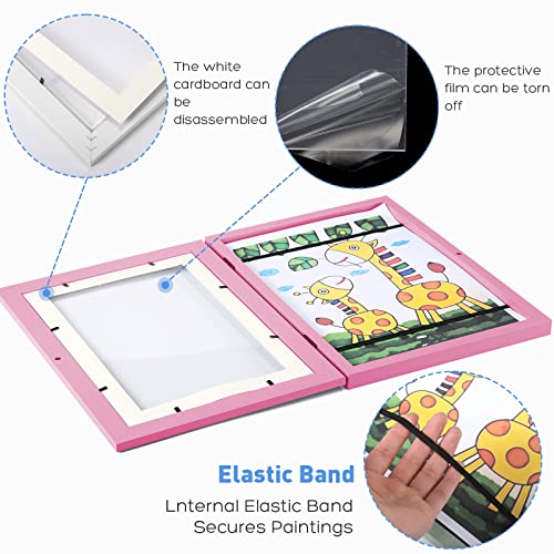 BESTOOL Cornice per foto con apertura frontale per disegni per bambini, cornice per foto d'arte per bambini riempibile, cornice per bambini in legno per A4 (rosa)