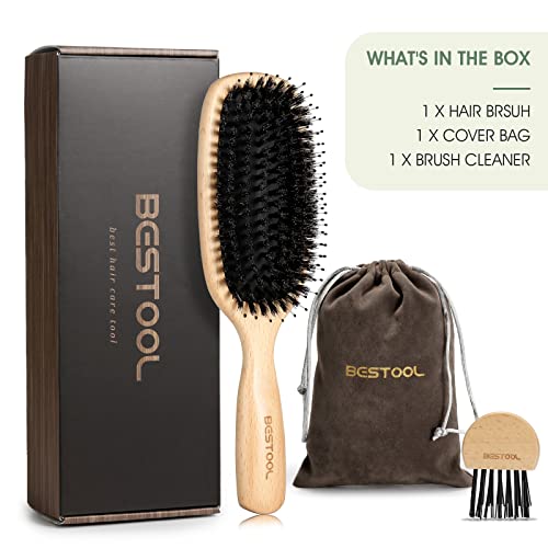 BESTOOL Spazzola per capelli, spazzola in setole di cinghiale con spilli in nylon per donna, uomo e bambino, per massaggiare, districare, stirare, adatta a tutti i tipi di capelli