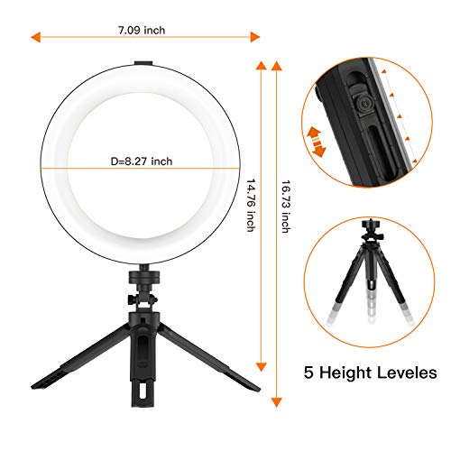 Anello di luce LED: 20,3 cm per selfie con specchio, treppiede e supporto per telefono, che può fornire un effetto di illuminazione eccellente sul vostro video YouTube, fotografi, trucchi, selfie, Vlog, streaming dal vivo, visualizzazione del prodotto, ecc. Sotto l'illuminazione del set di luci ad anello, il trucco sarà più bello e generoso. Nota: si prega di strappare la pellicola di protezione della superficie prima di utilizzare lo specchio.