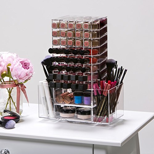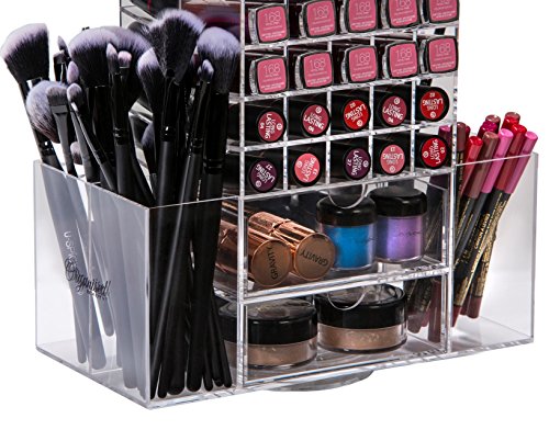 Bestope, torre da trucco in acrilico trasparente, 80 scomparti per rossetti, 4 cassetti, porta pennelli e 4 scomparti laterali