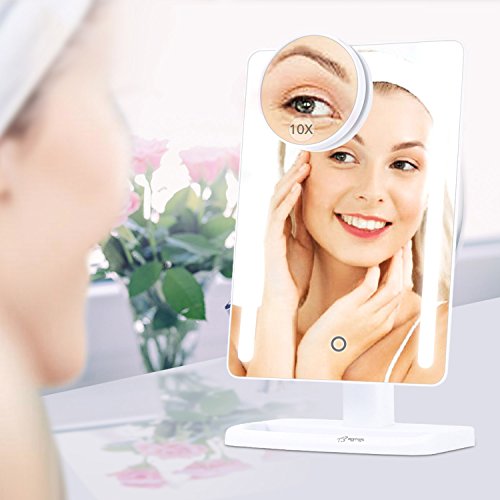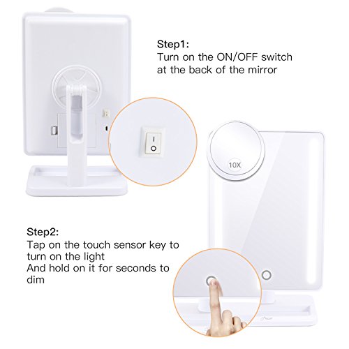BESTOPE 24 LED Trucco Specchio con luci, 30,5 cm Ampio Schermo con Staccabile 10 x Specchio ingranditore Specchio a LED, dimmerabile, Rotazione 180 °, Doppia Alimentazione, ad Alta Definizione