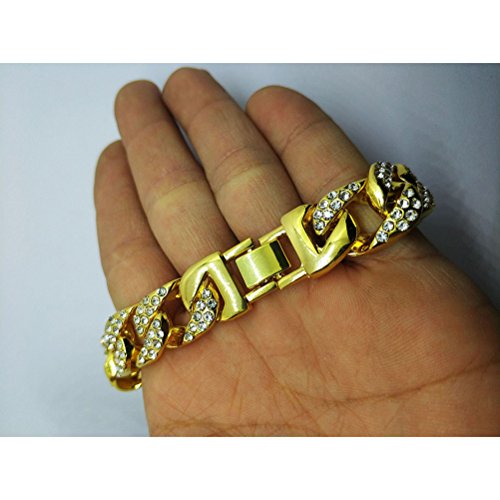 BESTOYARD Mens Bracelet Hip Hop Crystal Rhinestones Diamonds Cuban Gold Plated Link Chain Jewelry Decoration