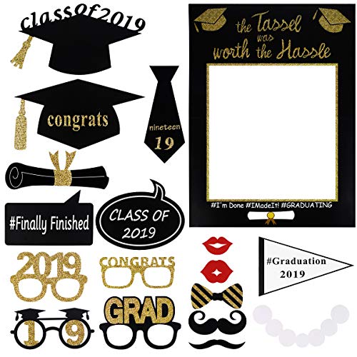 BESTOYARD Graduazione Foto Puntelli Graduazione Photo Booth Cornice Glitter Complimenti Decorazioni Festa di Laurea per 2019 Forniture per Feste di Laurea