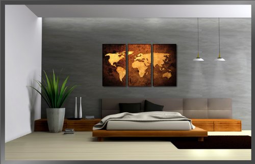 Bestpricepictures 160 x 90 cm Quadro su Tela mappamondo 1162-SCT - Stampa/Disegno/Immagine Pronto da Appendere