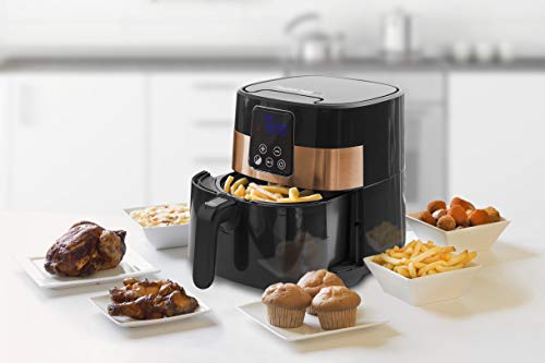 BESTRON AAF7003DCO Aria Calda, XXL, con Tecnologia Prepair, friggitrice con Display Digitale e Touch Screen, 4 Litri, 1300 Watt, Nero/Rame, Plastica
