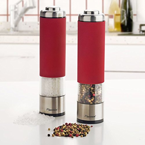 Bestron APS526R Set di macinatori elettrici per sale e pepe, rosso