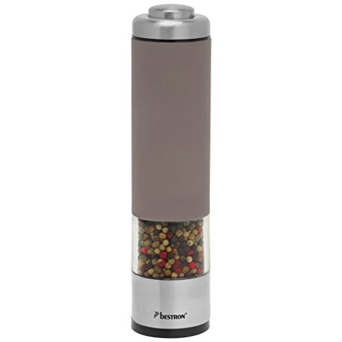 Bestron APS526T Set di macinatori elettrici per sale e pepe, taupe