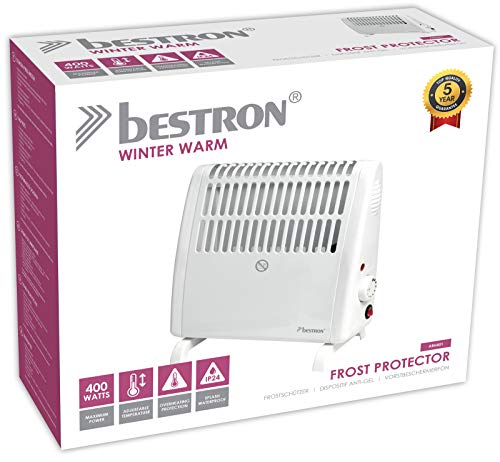 Bestron Dispositivo antigelo, Autoportante o fissato a parete, Resistente agli schizzi, Termostato, Incl. set per montaggio a parete, 400 Watt, Bianco