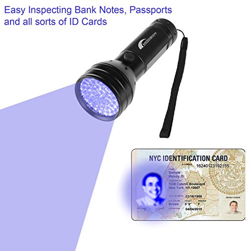 51 LED, la torcia elettrica Ultra Violet sono più chiare e più grande per area fluorescenza urina essiccata, macchie, odore di cani, gatti e altri piccoli animali su moquette, tappeti, vestiti;