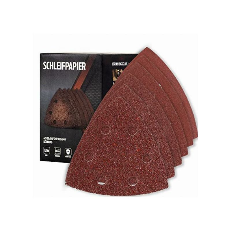 Carta vetrata di ricambio per tutte le comuni smerigliatrici triangolari. Diverse grane: 40, 60, 80, 120, 180 e 240. Contenuto: 66 o 126 pezzi (si prega di scegliere la variante).