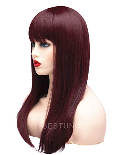 Bestung, parrucca da donna con capelli lunghi e lisci, capelli sintetici, con frangia pulita, per costume da cosplay o vita quotidiana