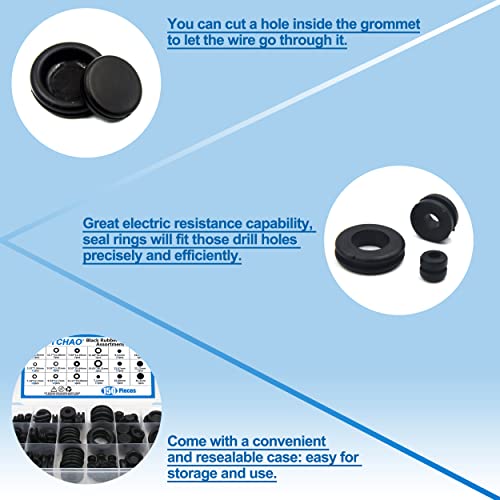 BESTYCHAO 150 pezzi Kit di assortimento di anelli di guarnizioni per conduttori elettrici in gomma in 18 misure per la protezione di fili, spine e cavi