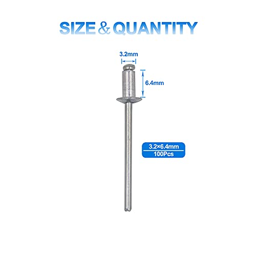 BESTYCHAO 100 pezzi rivetti ciechi in alluminio 3,2 mm x 6 mm, rivetti pop rivetti aperti, confezione da 100 (argento)