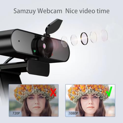 Bestyks Full HD 1080P Webcam with Microfono, Webcam with Automatic Light Correction, Manual Zoom, Noise Reduction, USB Computer Camera, for OSX10.6 + Microsoft Windows XP/7/8/10