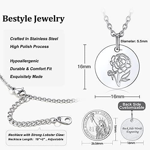 Bestyle Collana Donna con Fiore Peonia Settembre, Collane Acciaio Inox Donna Ciondolo Rotondo con Fiore, Confezione Regalo