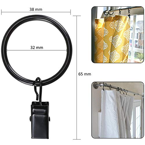 BESTZY Anelli per Tende con Clip, 40 Pezzi Antiruggine Metallo Tendaggi Anello per Hotel, Ristorante, Sala riunioni, Camera da Letto, Diametro Interno 32 mm