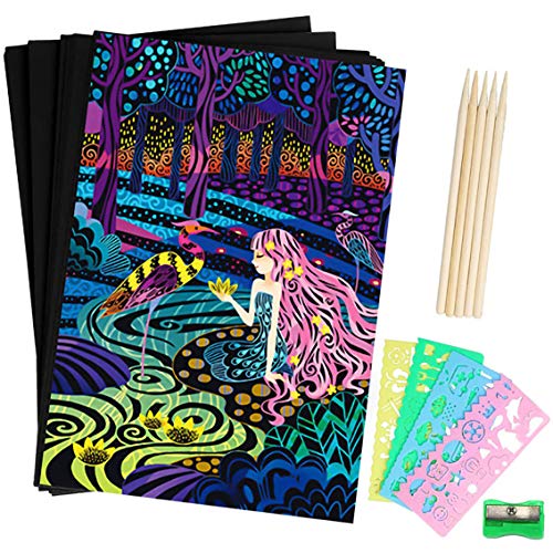 Sicuro e non tossico: Fogli art scratch sono fatti di carta da disegno di alta qualità, i gratta e vinci non sono tossici, sicuri per i bambini, e può essere collocato nella borsa quando si parte per fornire intrattenimento per i bambini.