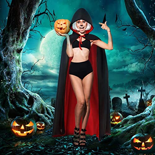 BESTZY Mantello Vampiro Nero Rosso, Bifacciale Mantello con Cappuccio Lungo | Costume Unisex di Halloween Carnevale Natale Capo Masquerade Vampiro - (Nero Rosso, 120cm)
