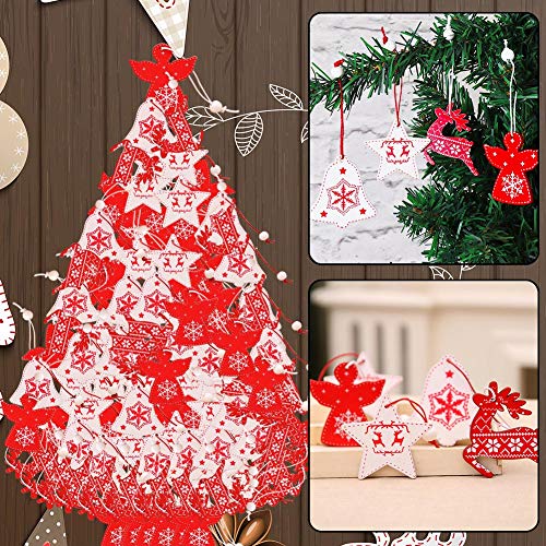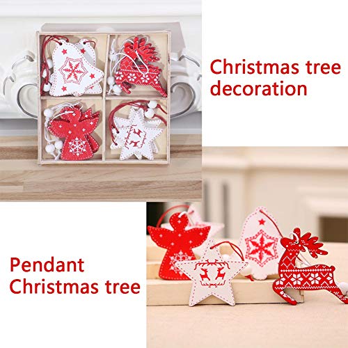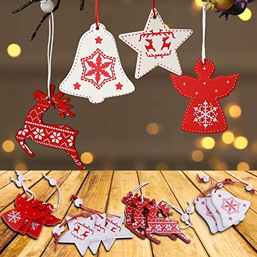 BESTZY Natale Ciondolo in Legno 24 Pezzi Pendenti Legno Natalizi Addobbi Albero di Natale Decorativi per Albero di Natale Fai da Te Bianco Rosso