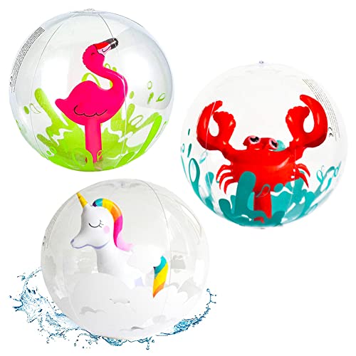 BESTZY Pallone Gonfiabile per Bambini, Pallone da Spiaggia 3 Pezzi, Pallone da Spiaggia Gonfiabile da Spiaggia con Immagini di Cartoni Animati per Doni da Spiaggia all'aperto